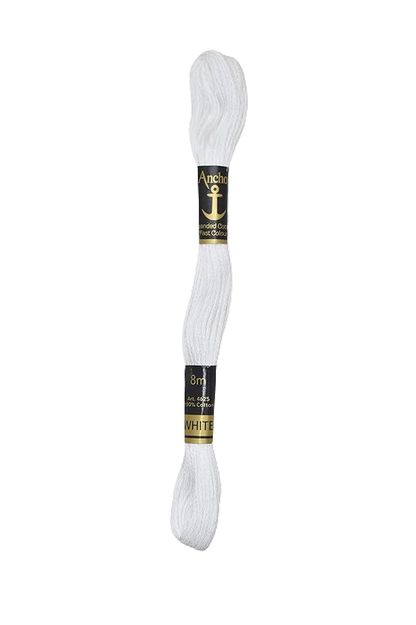 Anchor carefully crafts this embroidery thread to provide strength, flexibility, and long-lasting performance. The finely combed cotton fibers create a soft texture with a gentle sheen, helping the thread glide effortlessly through fabric and crochet stitches. It forms even, well-defined patterns, making designs look crisp, clean, and professionally finished. The White color remains bright and fresh even after repeated washing and regular use.