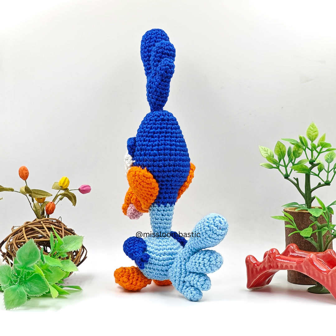 Bring the energy of the classic Road Runner into your home with this Road Runner Crochet Amigurumi. This Road Runner Amigurumi features vibrant colors, soft textures, and a playful design that makes it a standout crochet bird plush. Kids, collectors, and craft enthusiasts will love its lively appearance. It adds charm to any room and serves as a huggable, durable companion for play or display.